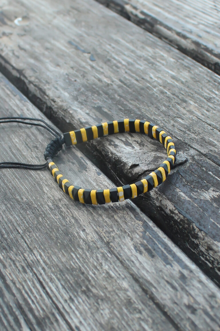 Yellow Black Color Hematite Macrame Natural Stone Men’s Bracelet EB3438