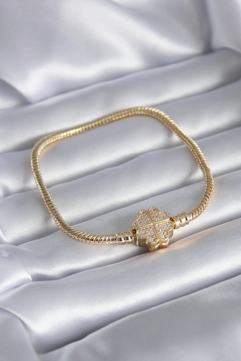 Checkout to get pricingGold Color Zircon Stone Clover Charm Model Brass Women’s Bracelet BB5521